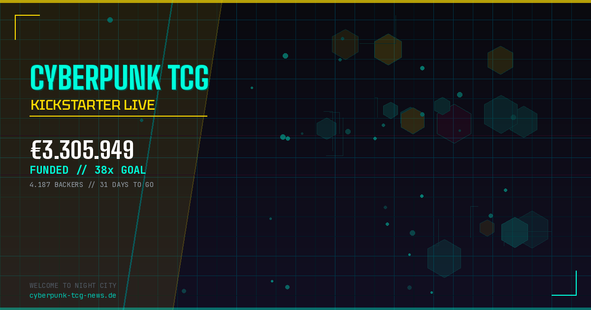 Ein Phänomen auf Kickstarter: Das offizielle Cyberpunk Trading Card Game von CD Projekt Red und WeirdCo hat heute, am 17. März 2026, seine Kickstarter-Kampagne gestartet — und die Community hat reagiert wie bei kaum einem TCG-Launch zuvor. In etwa fünf Minuten war das Fundingziel von 87.017 Euro erreicht. Die Kampagne hat bereits die 4-Millionen-Euro-Marke durchbrochen — mit über 4.500 Backern und steigend. Das ist mehr als das 46-fache des ursprünglichen Ziels. Der erste Stretch Goal folgte nur zehn Minuten später. Willkommen in einer neuen Ära des Cyberpunk-Universums — diesmal auf dem Spieltisch.